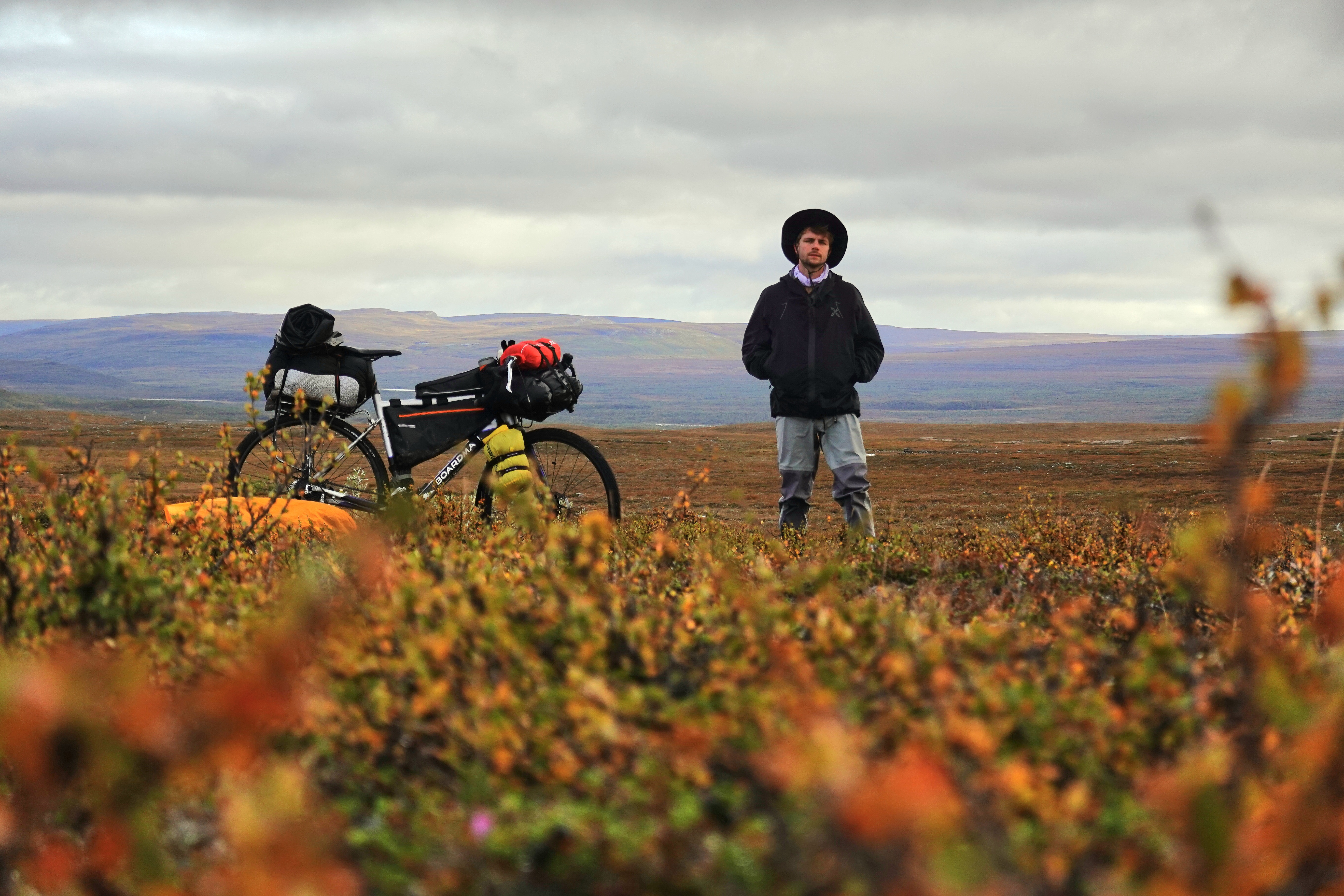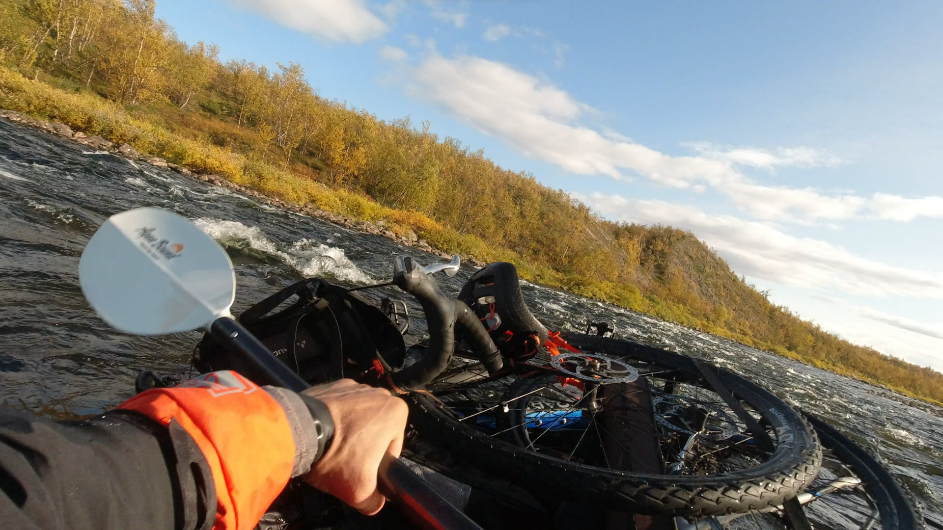 Vélo, packraft et randonnée; trois activités réunies en une aventure circulaire autour du parc national Reisa en Norvège.Après 15 jours d’ efforts, 430 km de vélo, 100km à pied et 70 km en BikeRaft, je retrouva mon point de départ, aux portes du parc. Un défi de taille, compte donné de l’ itinéraire choisi, impliquant des routes presque impraticables à vélo et une descente en rivière classée III le vélo arrimé au packraft.